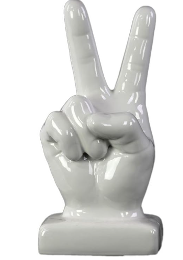 Ceramic Peace Hand Sign Decor on Base, Gloss White